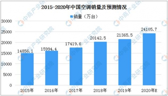 從銷量來看:從2016年至今我國空調(diào)銷售保持了持續(xù)上升的發(fā)展趨勢,2019年國內(nèi)空調(diào)總銷量21365.5萬臺,相比2018年的20142.5萬臺增長了6.07%,預計2020年我國空調(diào)總銷量將達24105.7萬臺。