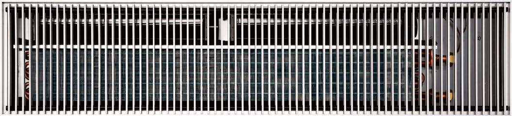 The fan powered floor convector can be bused for heating and cooling. The heat exchanging capacity is enhanced by forced air movement. It is installed flush with the floor, saving the space.
