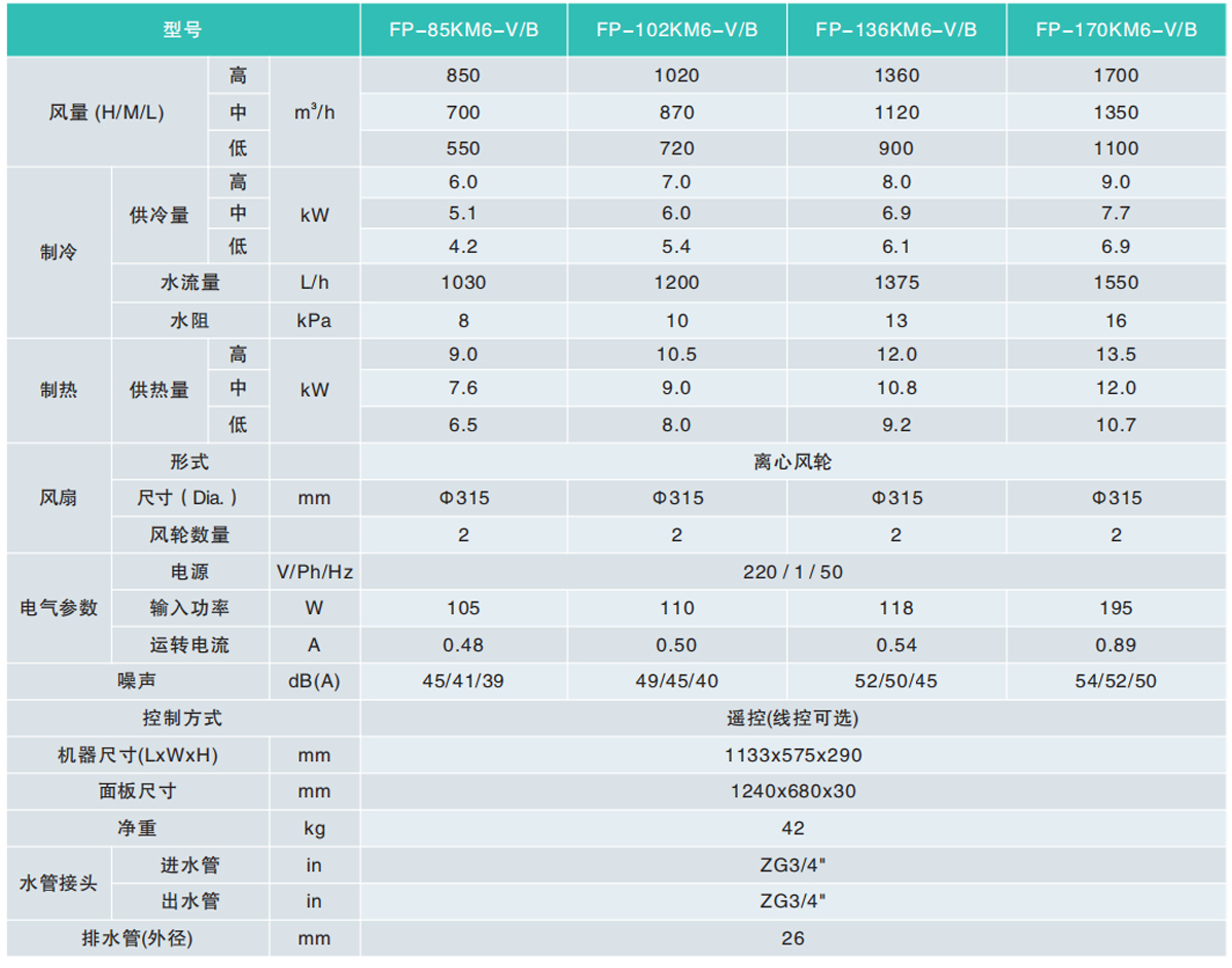 二管制六出風(fēng)卡式風(fēng)機(jī)盤管B系列